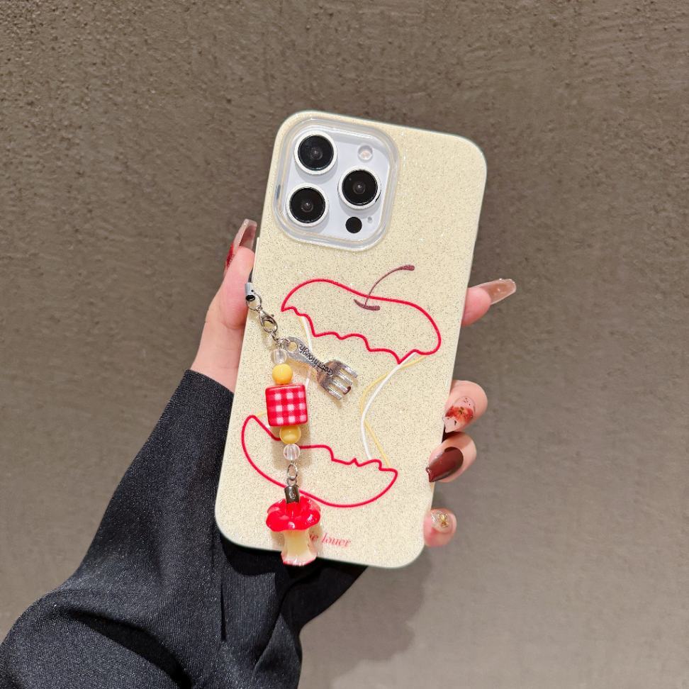 Cute Apple Core iPhone Case with Beaded Strap, Kawaii Fruit Design, Soft Glitter Protective Cover for Girls & Women
