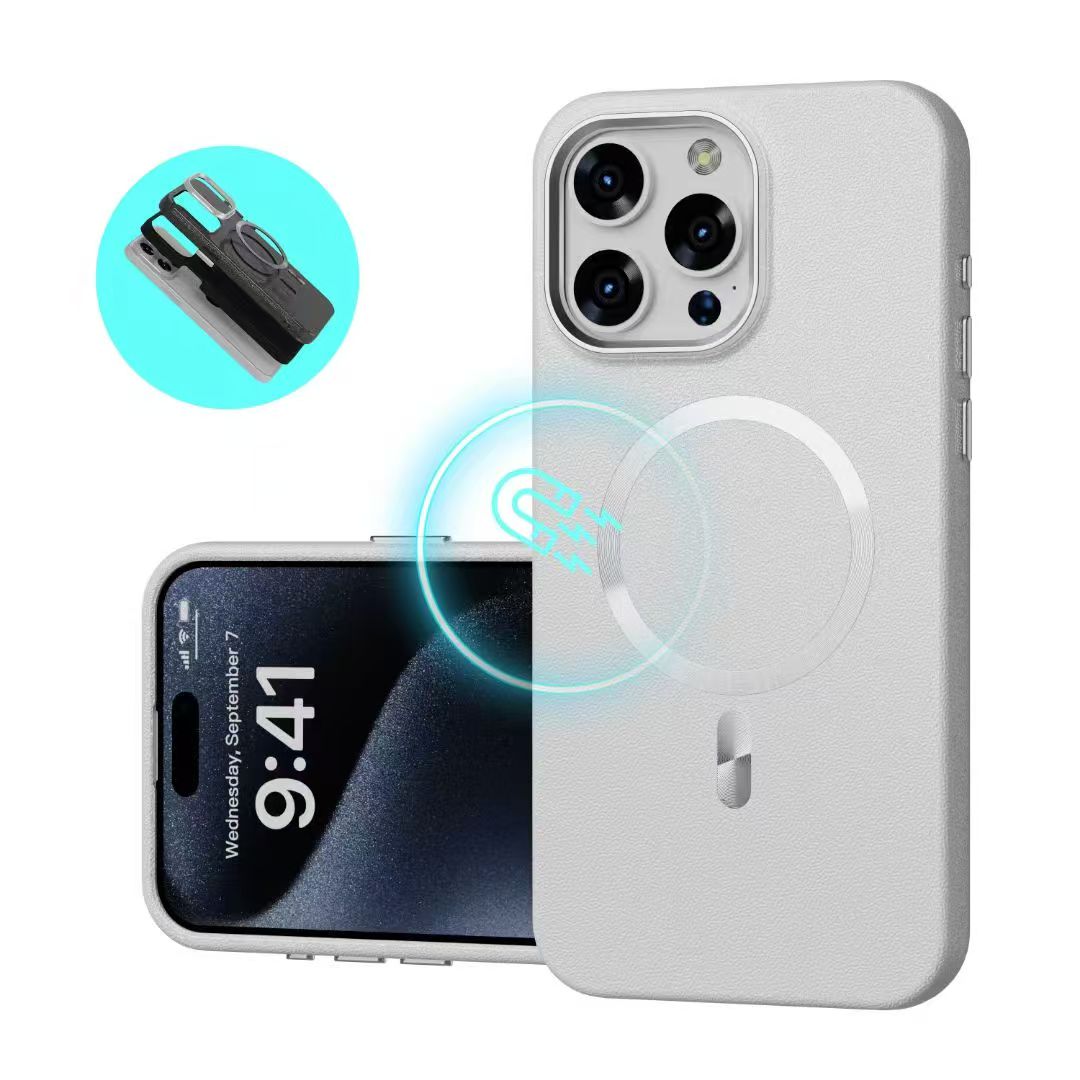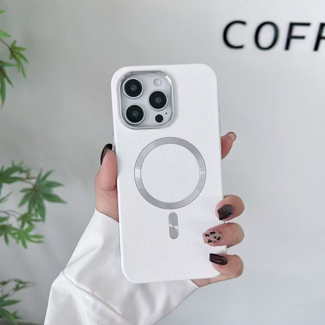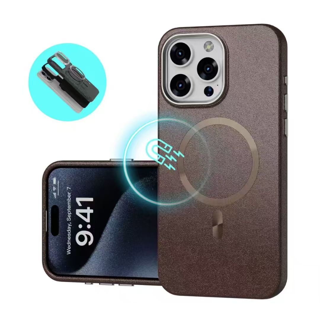 Leather Texture MagSafe Case with CD Pattern Ring Magnetic Charging Compatible Shockproof iPhone Cover